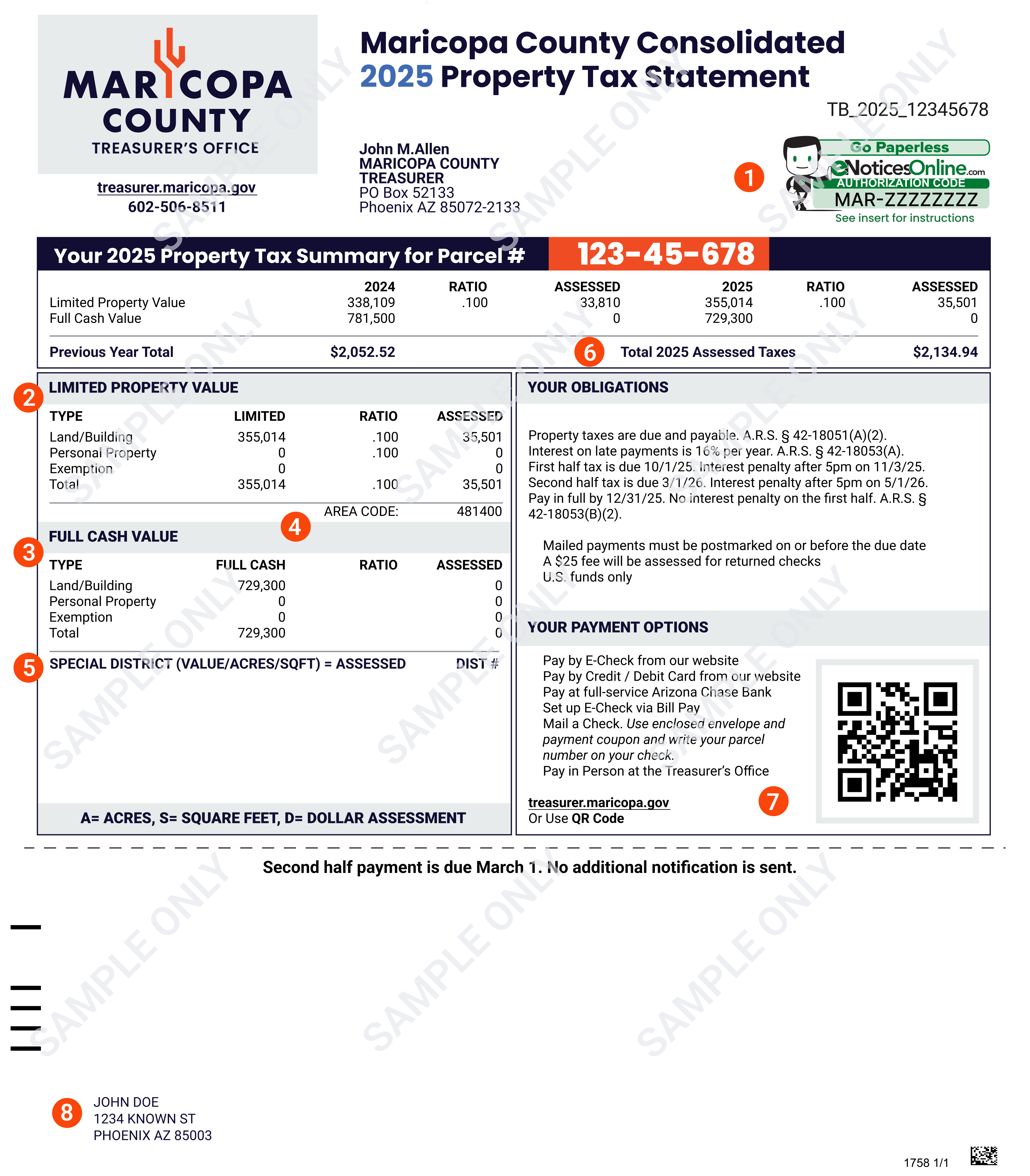 According to the Maricopa County Assessor’s Office, this is the physical location of the property being represented by this bill.